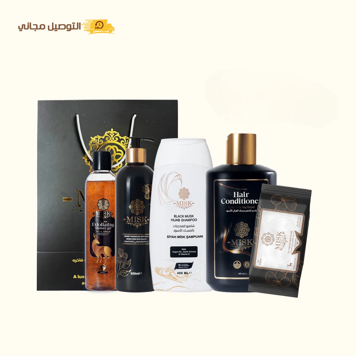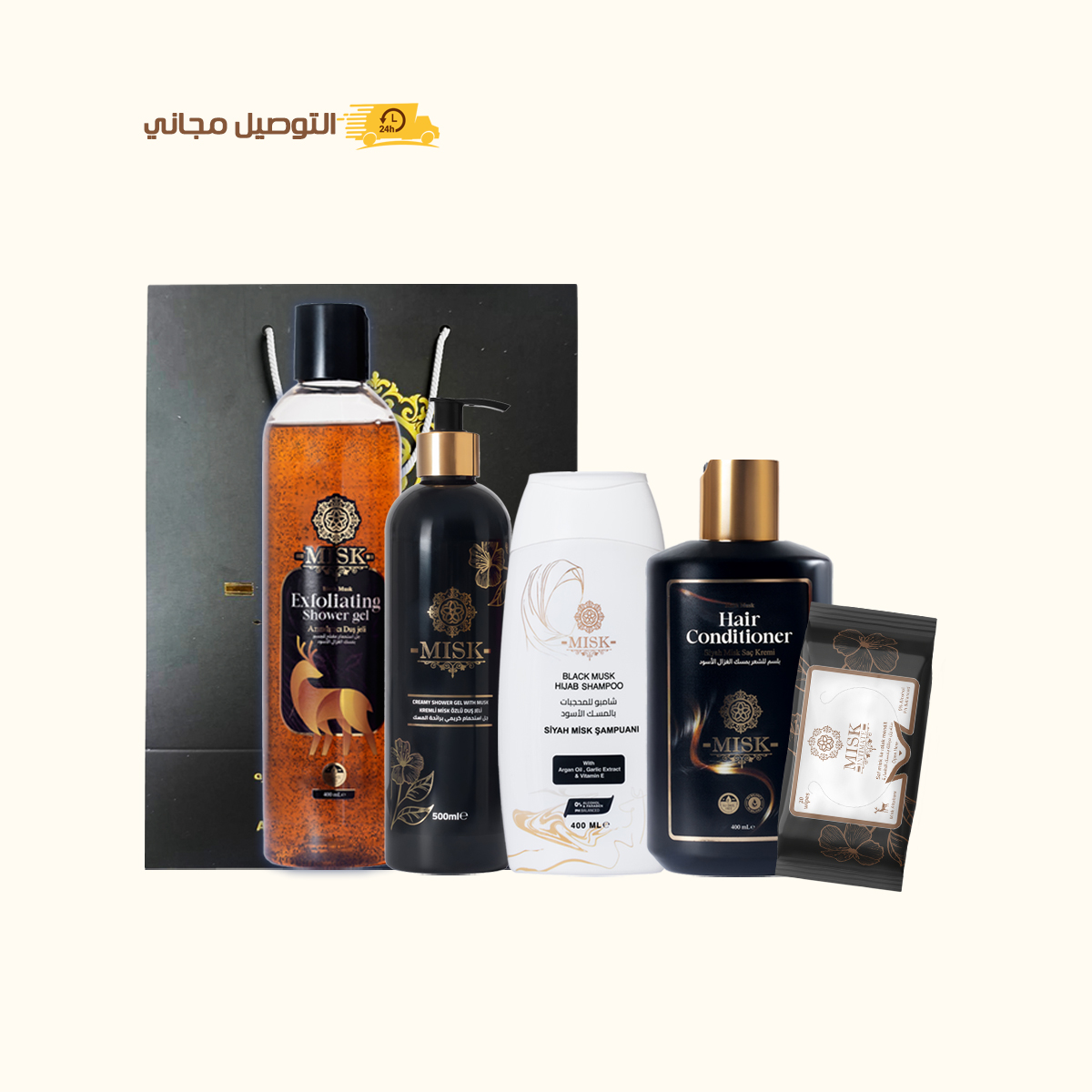 كيس حمام المسك (شامبو المسك +بلسم المسك +مقشر المسك +شاور جل المسك +مناديل الطهاره) : تخفيض 35 % + توصيل مجاني